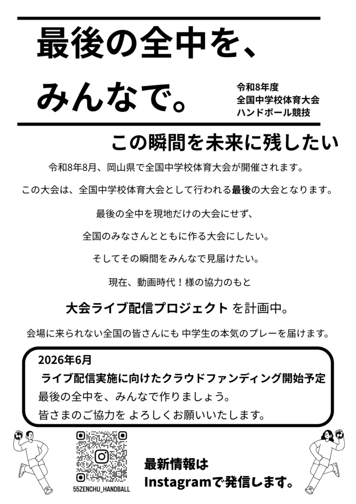 令和8年度全中大会ハンドボール競技ライブ配信プロジェクトのお知らせ